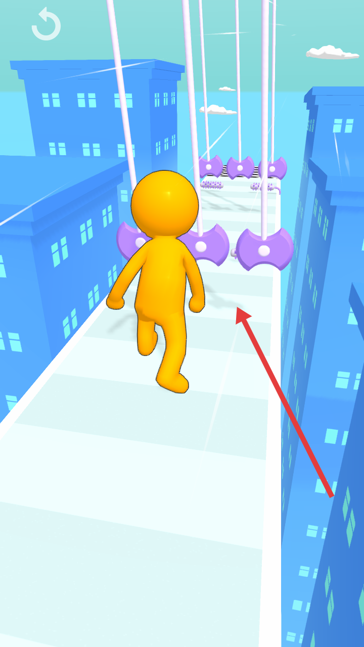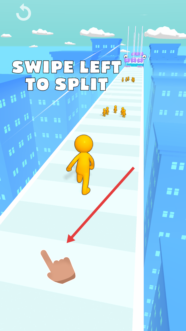 2、向左滑动屏幕,使角色分裂,以便通过赛道上的障碍区域,积累进度向终点推进。