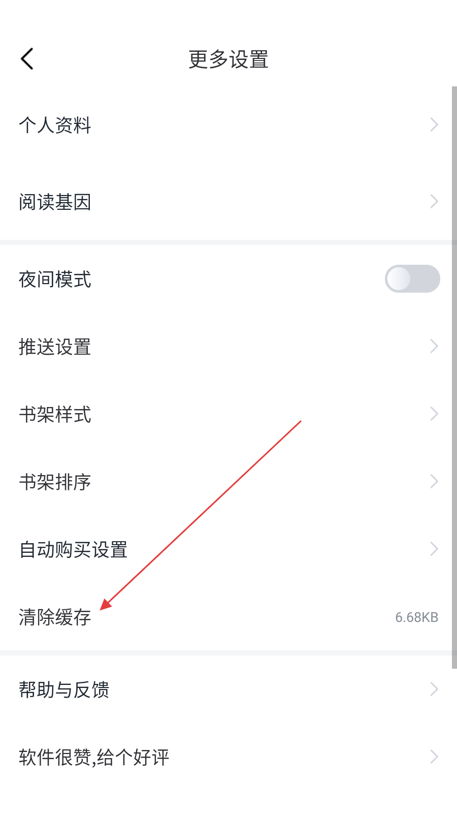 3、在更多设置页面,点击【清除缓存】,弹出清除缓存提示框。