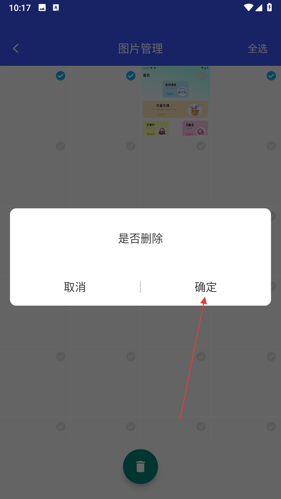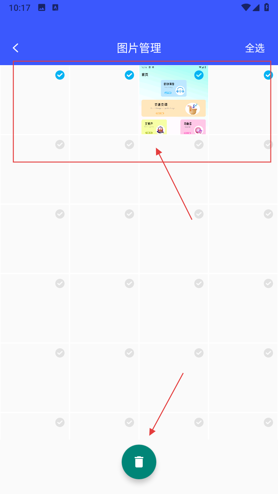 3、在图片管理界面,【勾选要删除的图片】点击【底部删除图标】。