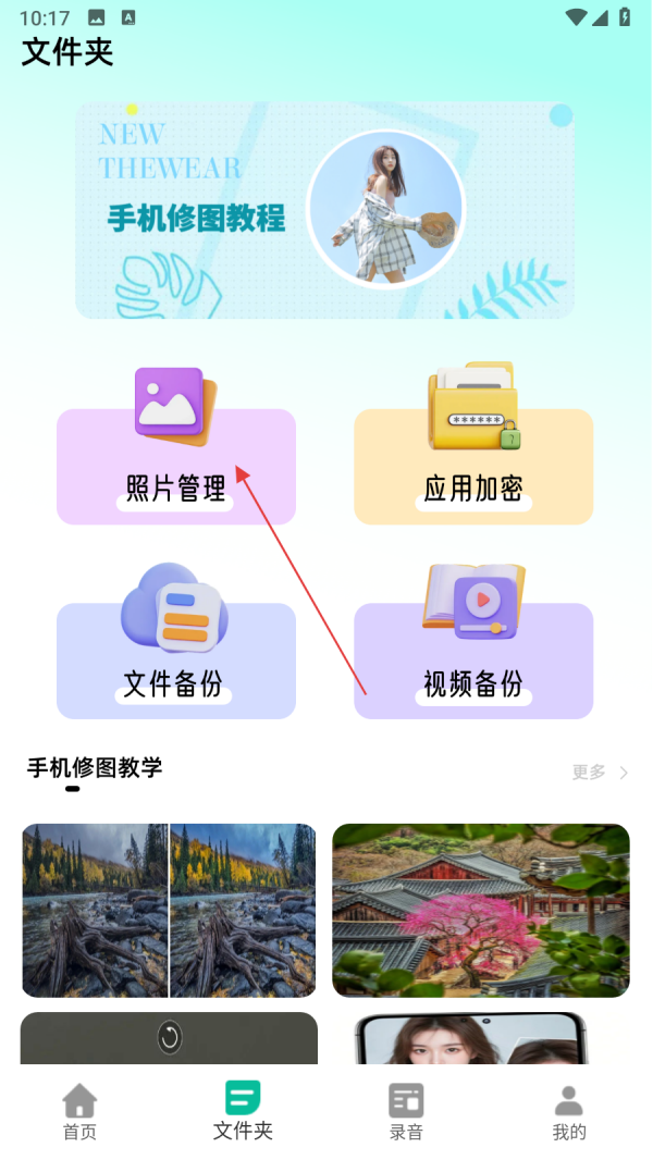 2、在文件夹页面,点击【照片管理】,进入图片管理界面。