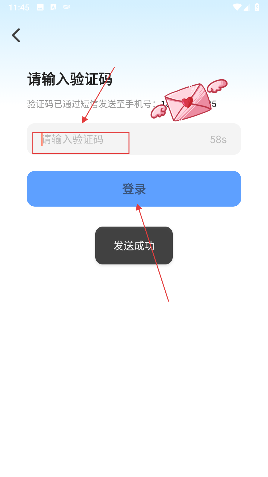 4、输入【收到的验证码】,点击【登录】,即可完成账号登录操作。