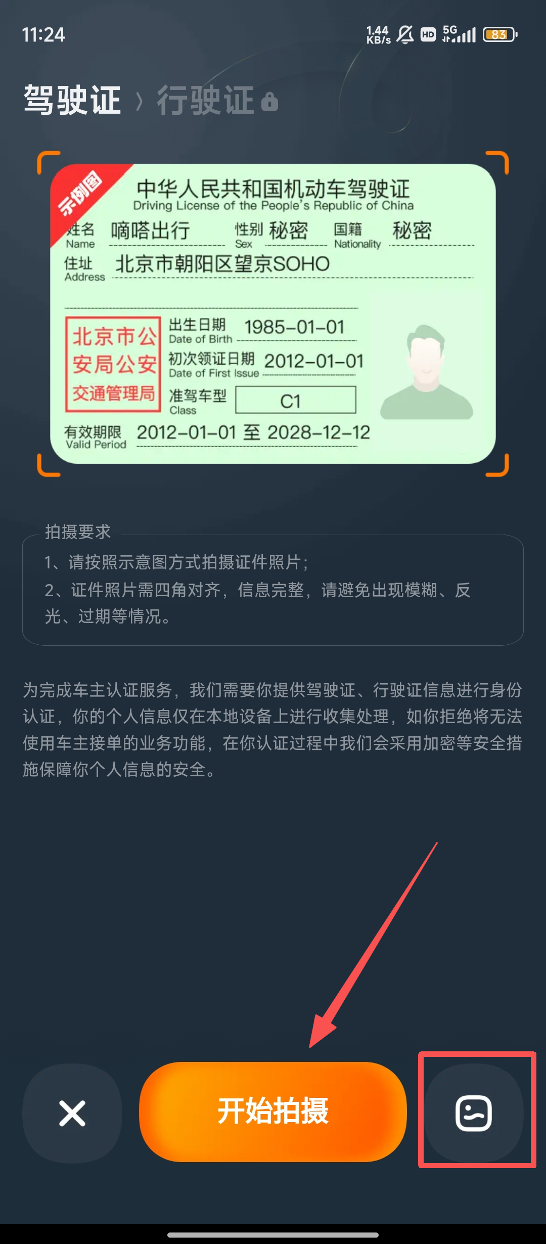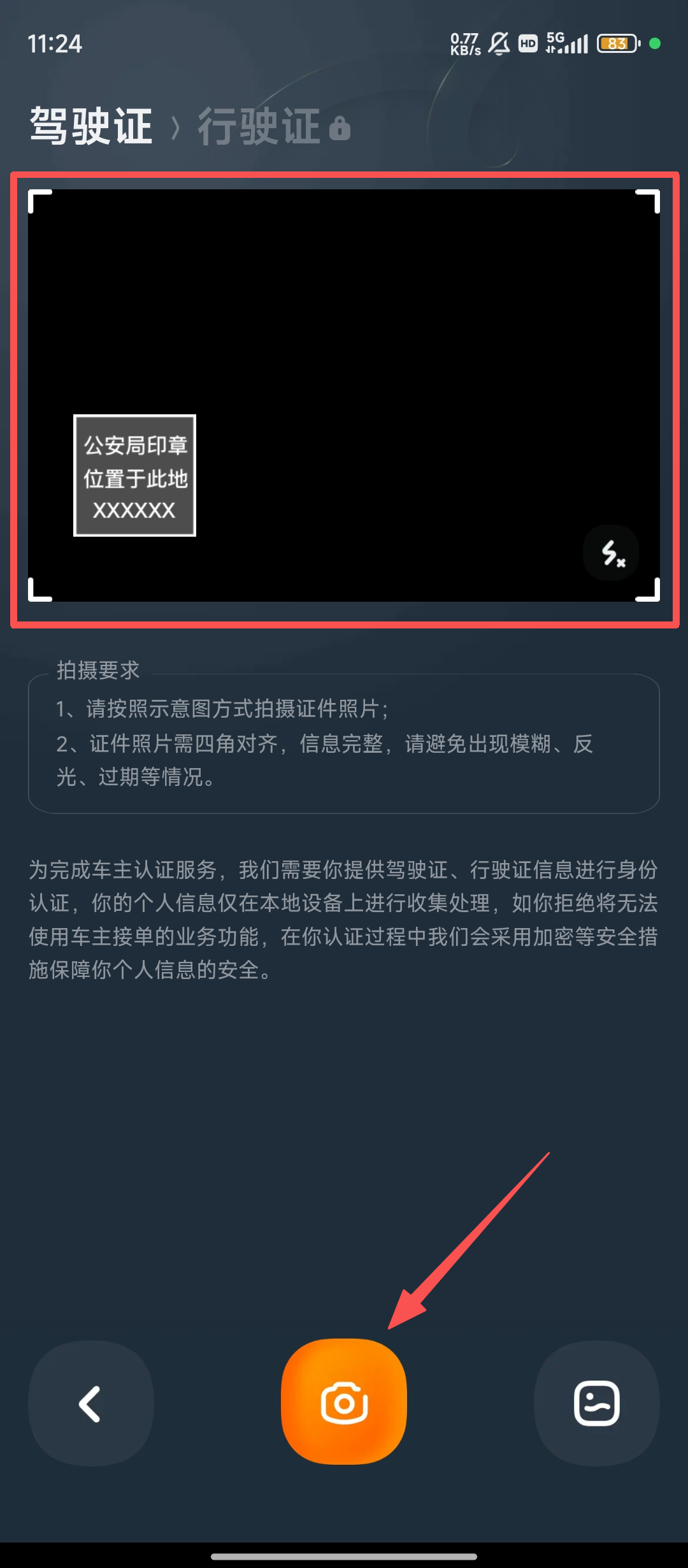 4、若你点击拍摄按键,只要按提示将驾驶证放入框内,最后点击摄像按键就好啦。