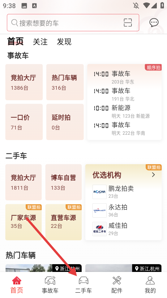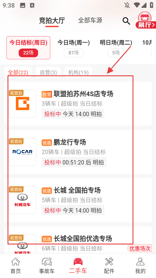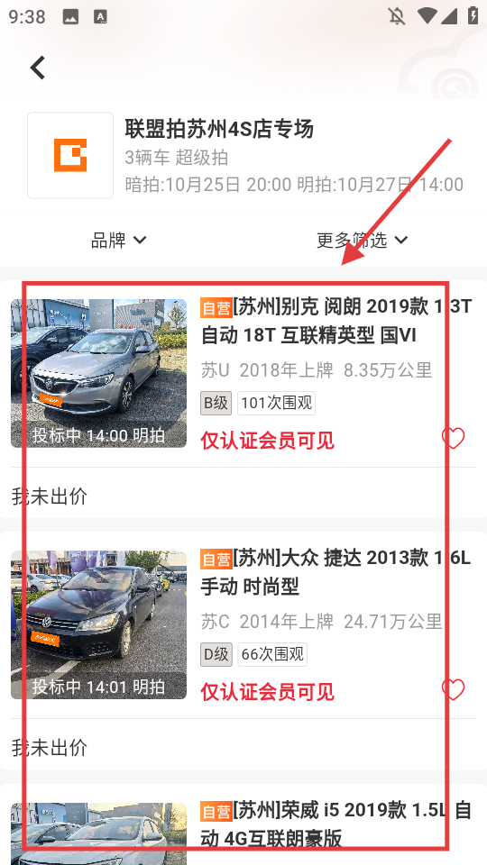 3、在专场页面查看车辆列表,选择感兴趣的车辆。