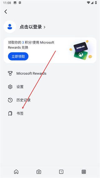 2、在个人功能页面中找到书签选项,点击该选项进入保存的内容页面。