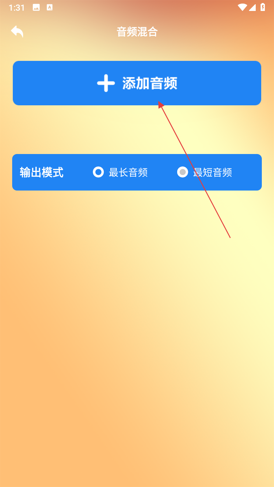 3、在音频混合界面,点击【添加音频】,选择要混合的音频。