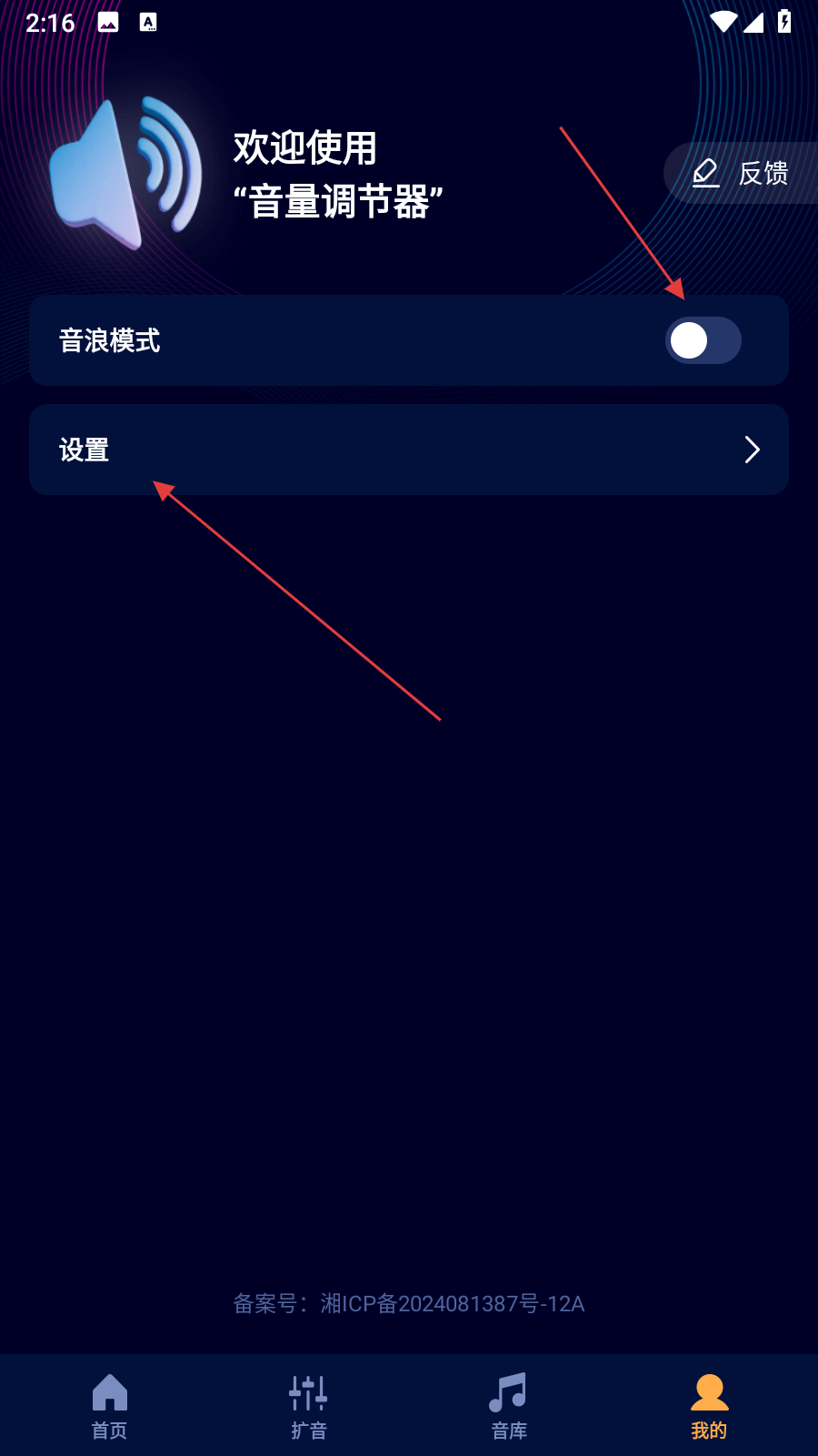 4、进入我的页面,可开启【音浪模式】,也能点击【设置】进行更多个性化设置。
