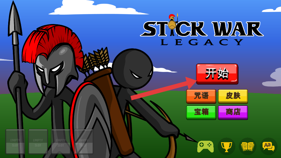 1、进入游戏后,点击【开始】按钮开启火柴人遗产战争的战斗征程。