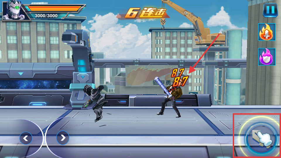 3、敌人出现后,点击右下角攻击按钮,持续攻击积累【6】连击,每次攻击造成【87】伤害,提升输出效率。