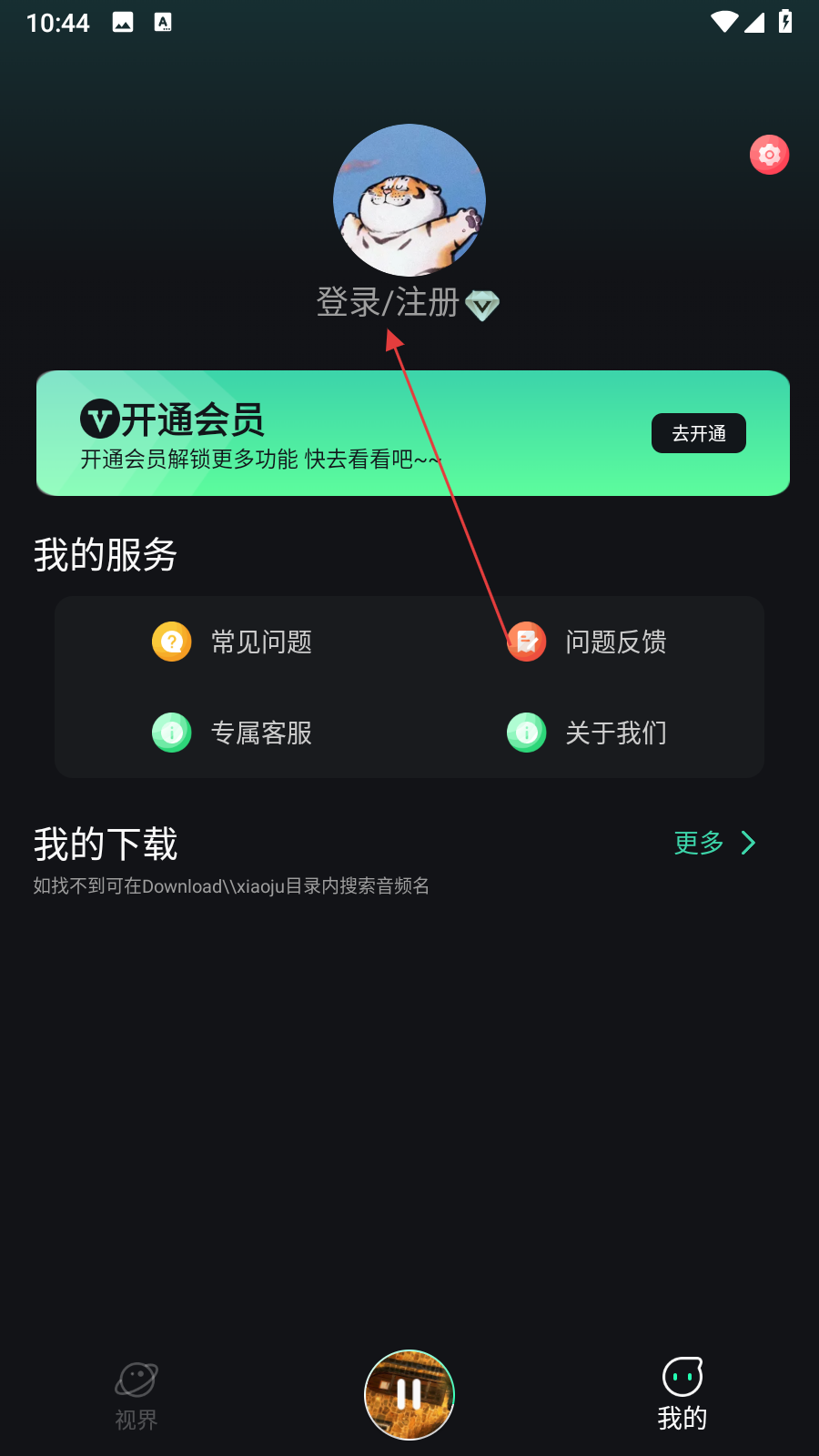 2、在个人页面,点击【登录/注册】,进入登录界面。