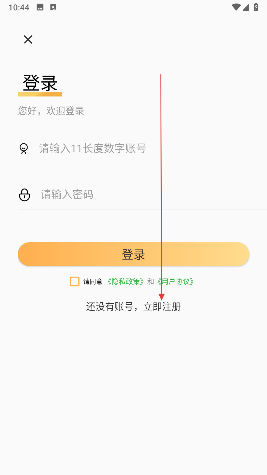 3、在登录界面,点击【还没有账号,立即注册】,进入注册页面。