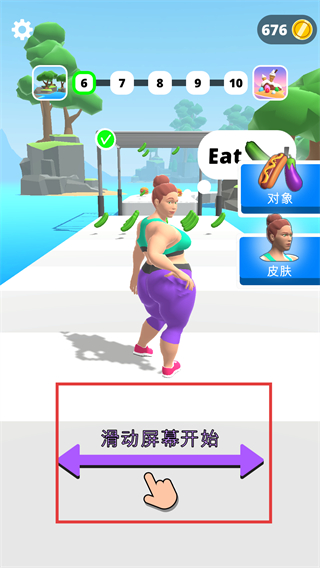 姐要变瘦手机版是款相当搞笑有趣的跑酷类型手游,玩家们在游戏内需要控制一名有着肥硕身材的美女去进行跑酷,关卡的道路中有着大量的健康蔬菜与黄瓜,你只有不断的收集这些才能逐渐的瘦下来,从而你的灵敏度也会逐渐提升,但是关卡内也会有大量的高热量食物,如汉堡炸鸡等等,你需要通过合理的操作去躲避这些道具,误食一个会成双倍增长你的体重哦!