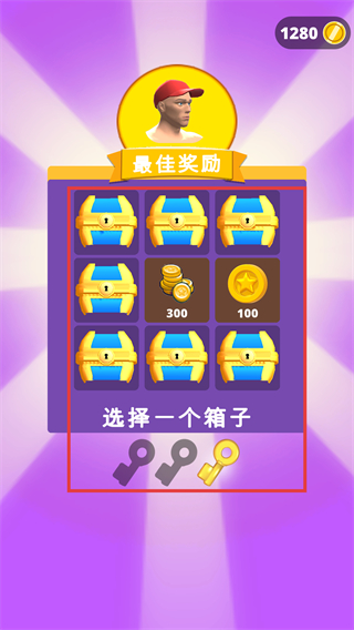 4、通关后进入奖励界面,用钥匙选择箱子获取奖励,优先选含【300】金币的箱子提升收益。