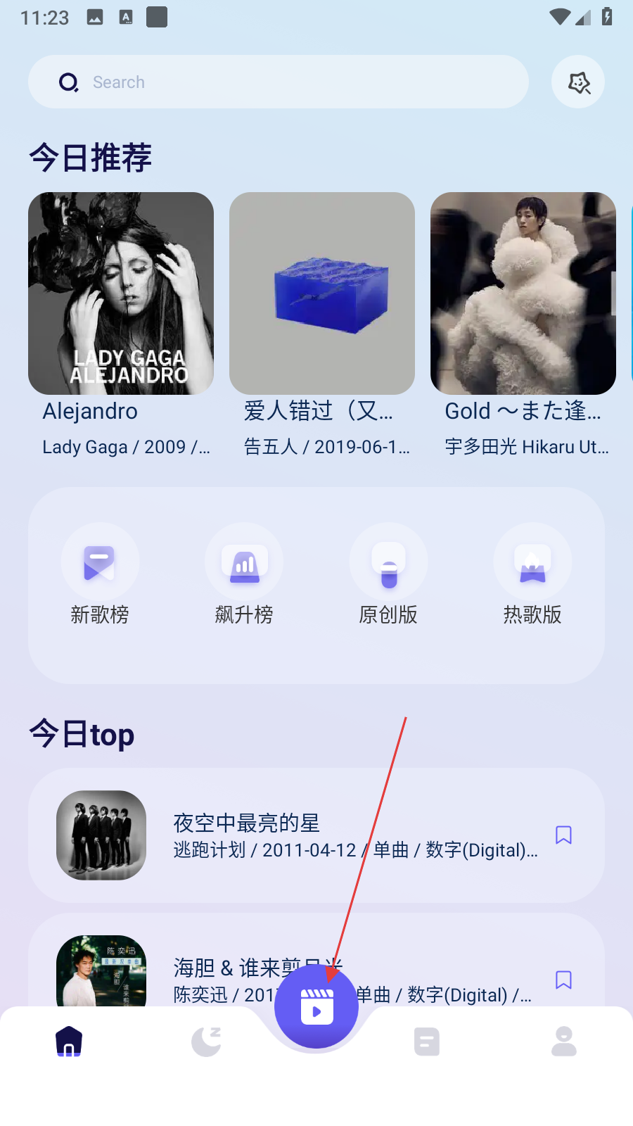 1、在首页,点击底部【中间的功能图标】,进入音乐助眠功能页面。