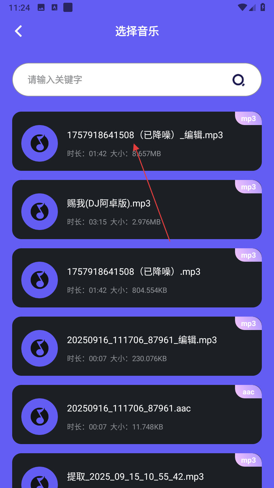 3、在选择音乐页,挑选【要剪切的音乐】,进入音乐剪辑页面。
