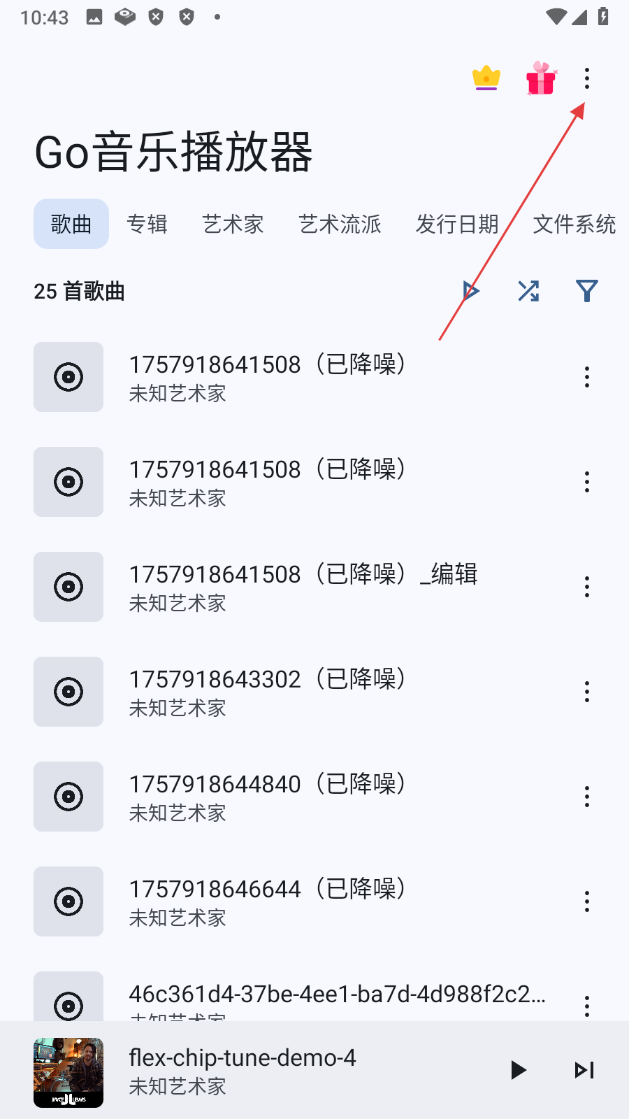 1、在Go音乐播放器主界面,点击【右上角三点图标】,进入设置页面。