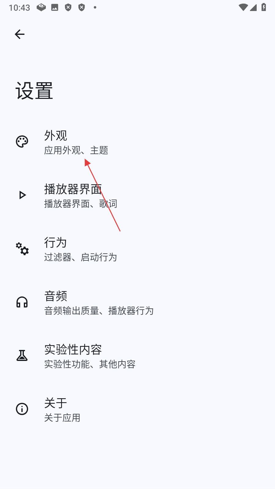 2、在设置页面,点击【外观】,进入外观设置页面。