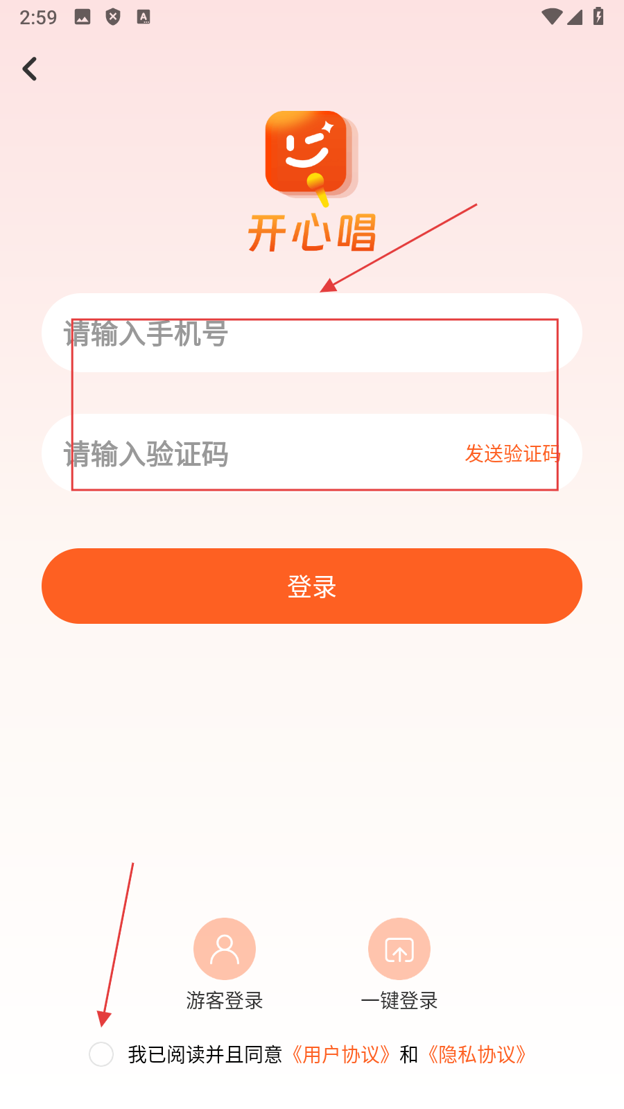 3、进入其他手机登录页面后,先勾选【同意协议】,再输入【手机号和验证码】。