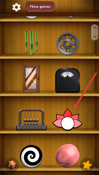 1、在游戏主界面,点击红色箭头指向的莲花状玩具,进入该玩具的解压界面。