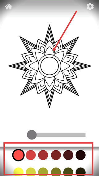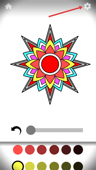 3、将颜色涂抹完成后,点击红色箭头指向的设置按钮,可进入设置界面调整游戏相关选项。