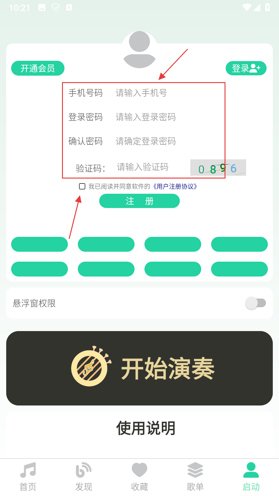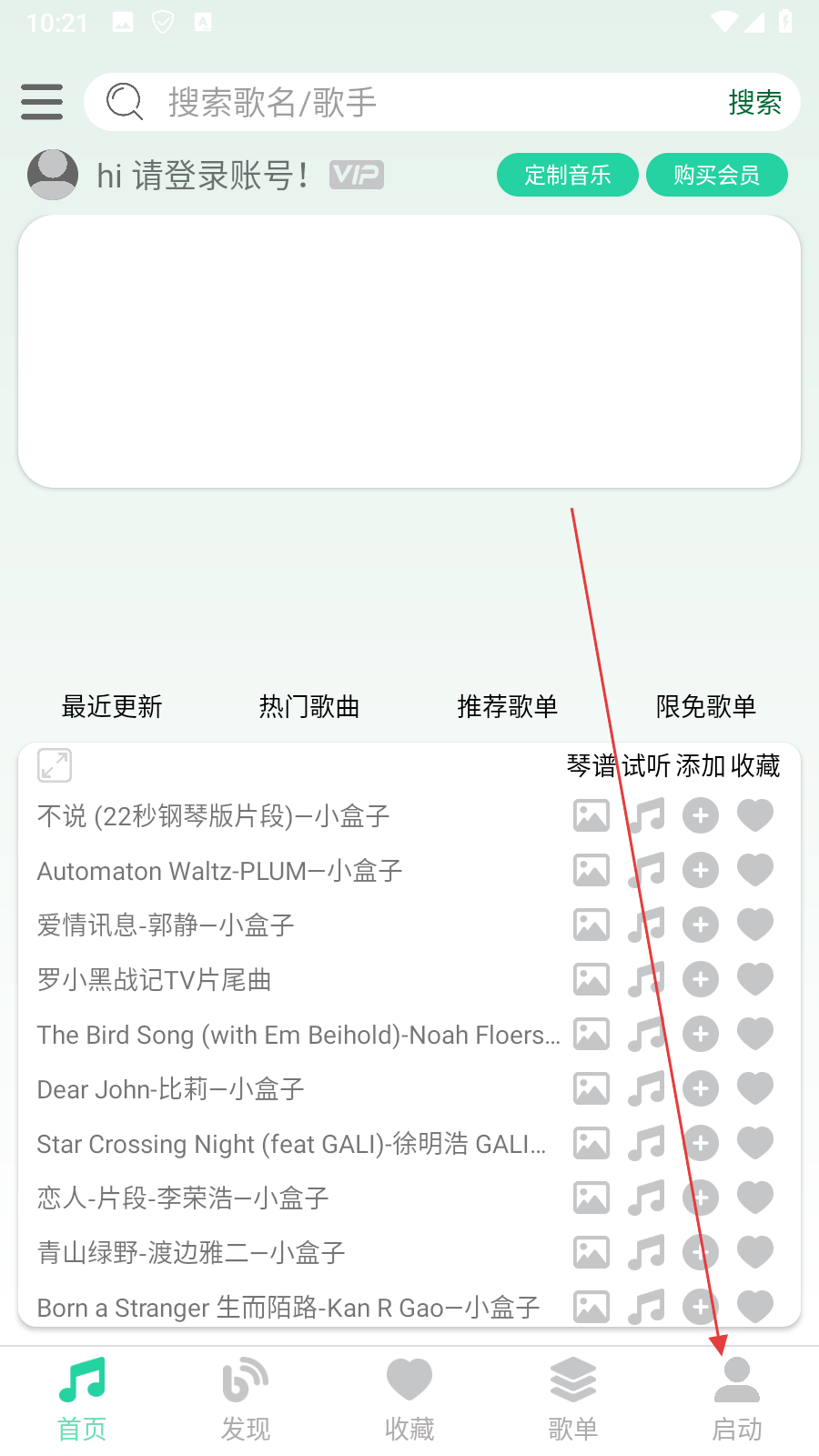 1、在首页,点击底部【启动】选项,进入登录注册页面。