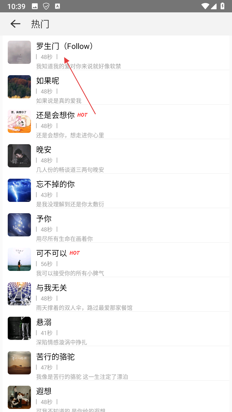 1、在首页,点击【热门】选项,进入热门铃声列表页面。
