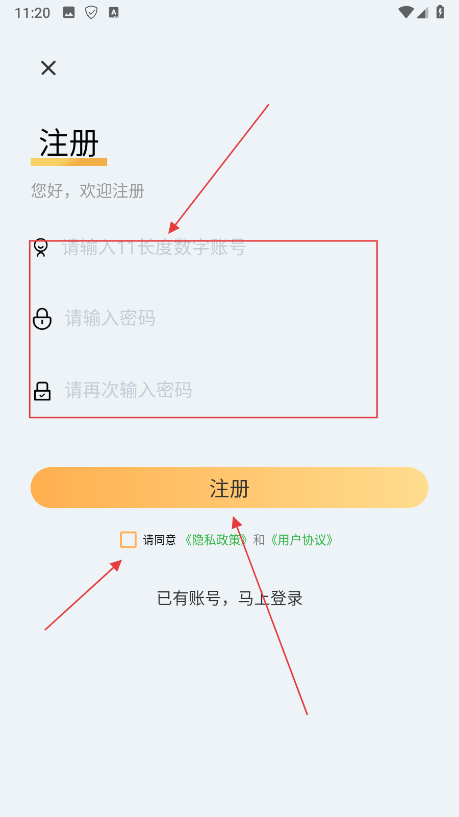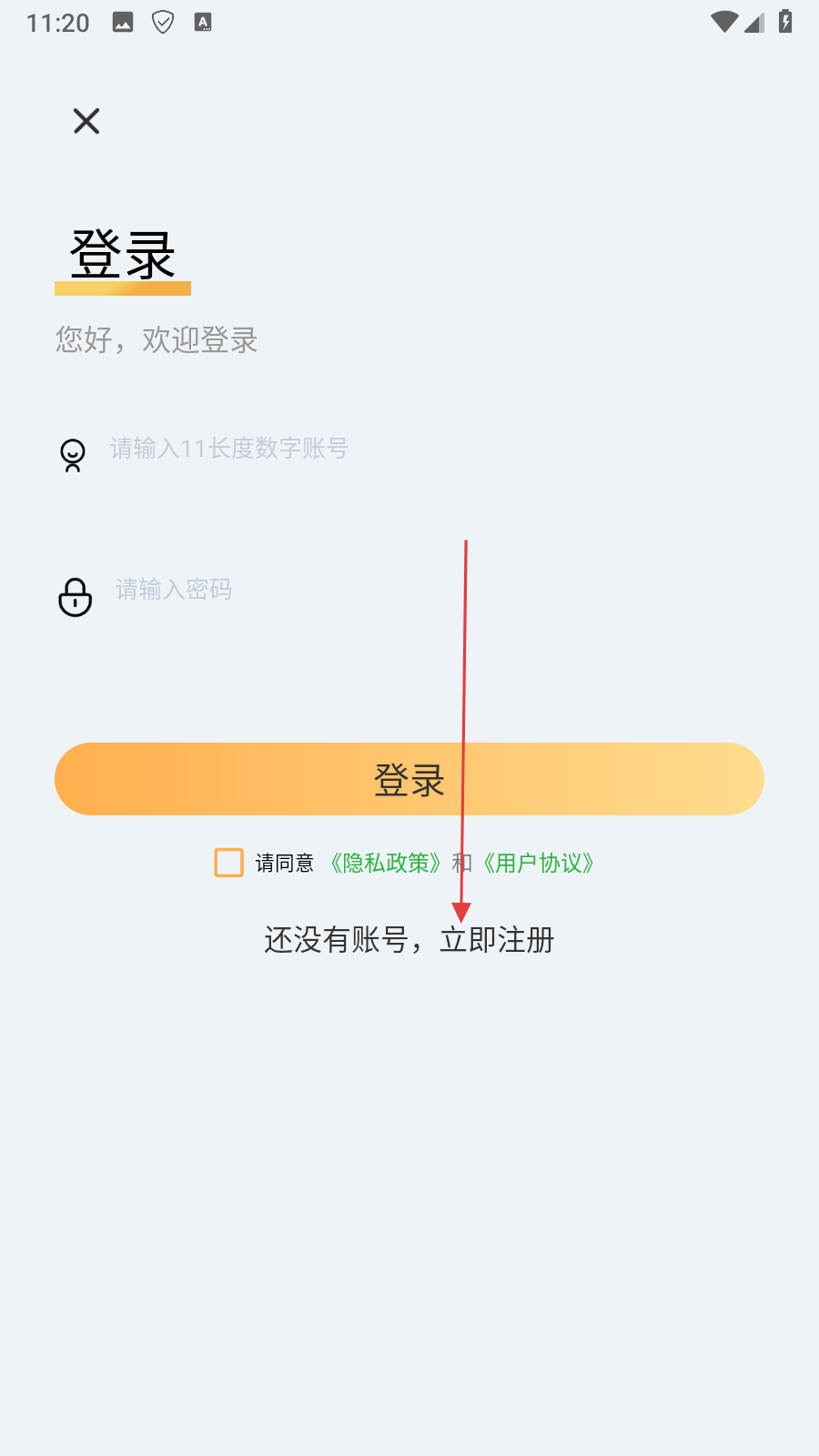 3、在登录页面,点击【还没有账号,立即注册】选项,进入注册页面。