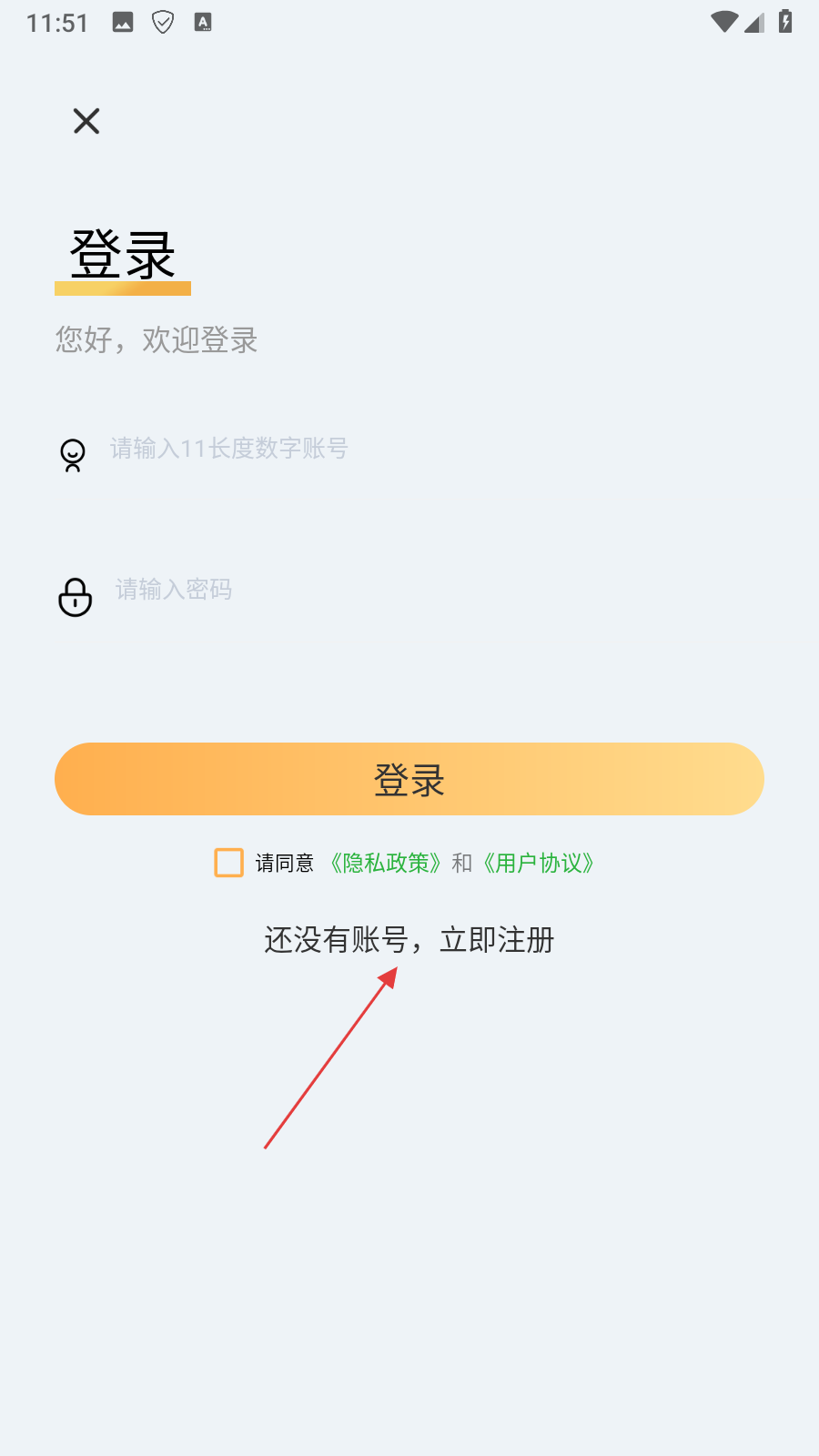 3、在登录页面,点击【还没有账号,立即注册】选项,进入注册页面。