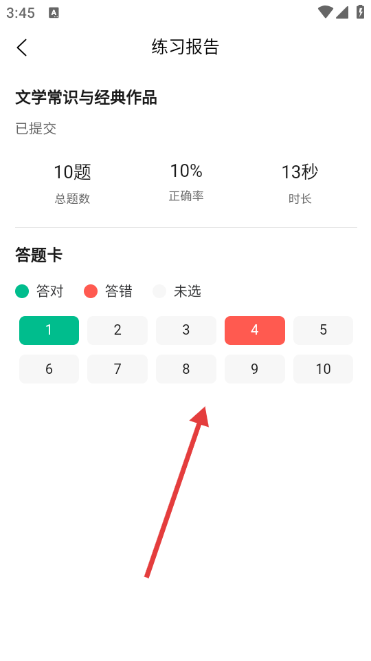 4、答题结束后,可查看练习报告,了解总题数、正确率、时长等答题情况。