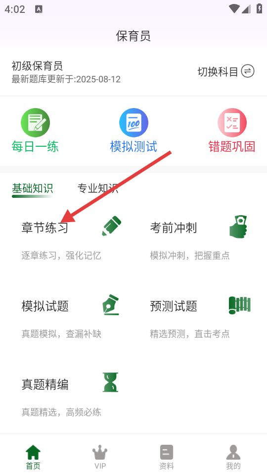 1、打开APP,在首页中,可选择点击【章节练习】。
