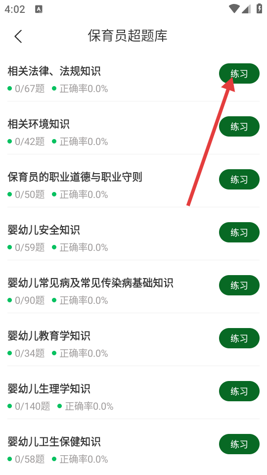2、进入页面后,选择具体科目,点击【练习】。