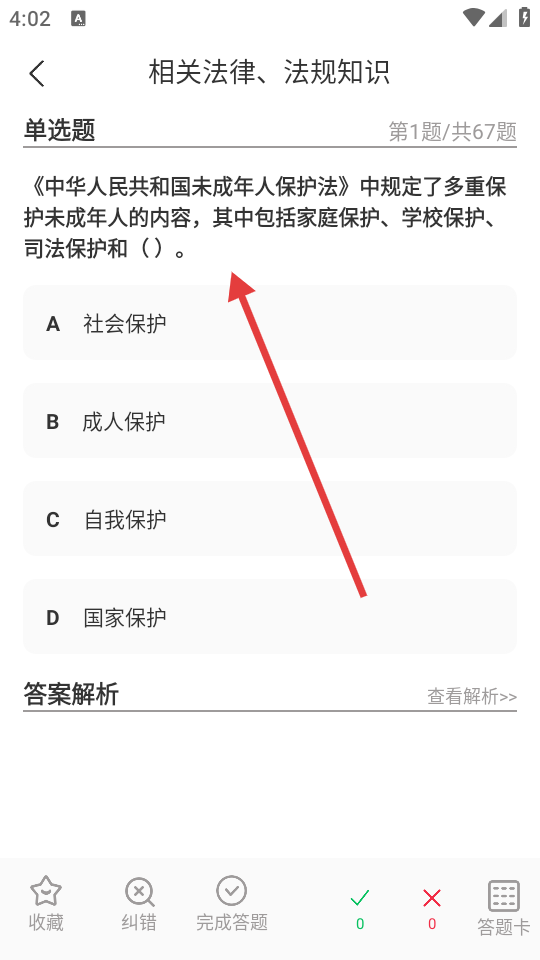 3、进入具体科目练习,可进行单选题等题型的作答。