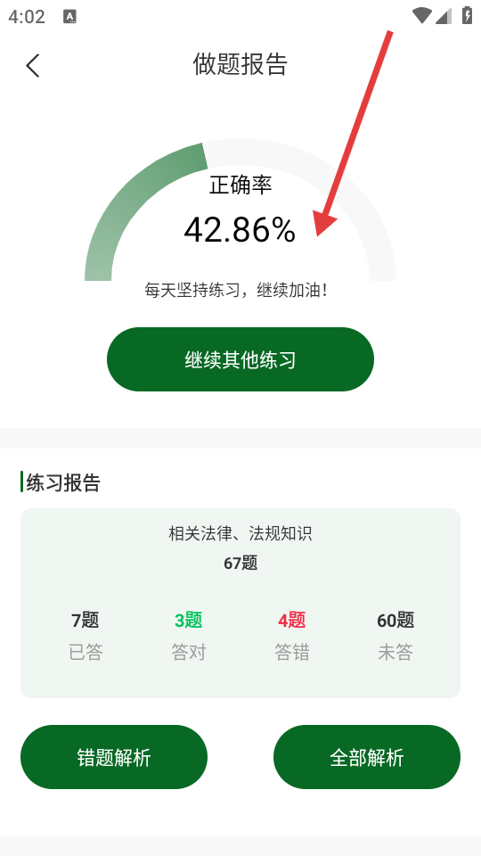 4、答题结束后,可查看做题报告,了解答题情况,也可进行题目解析。
