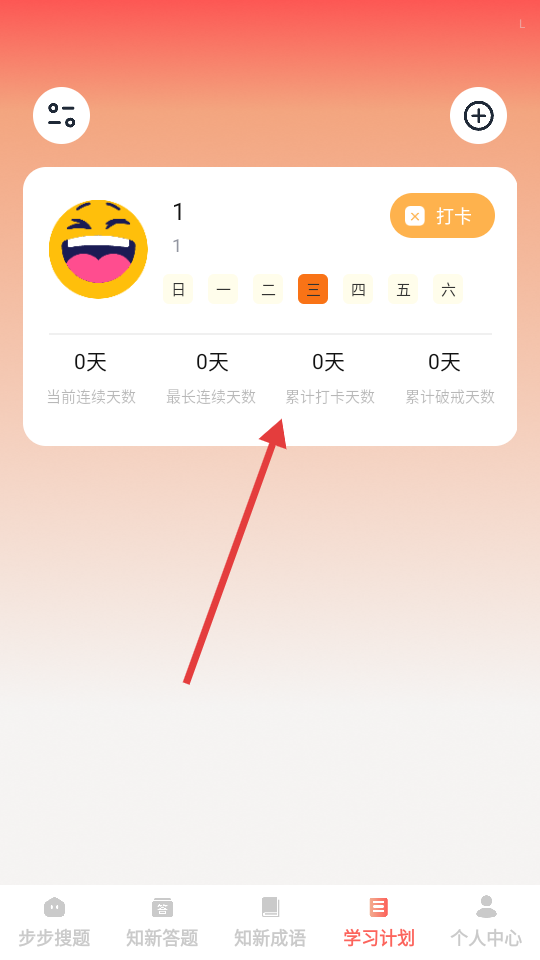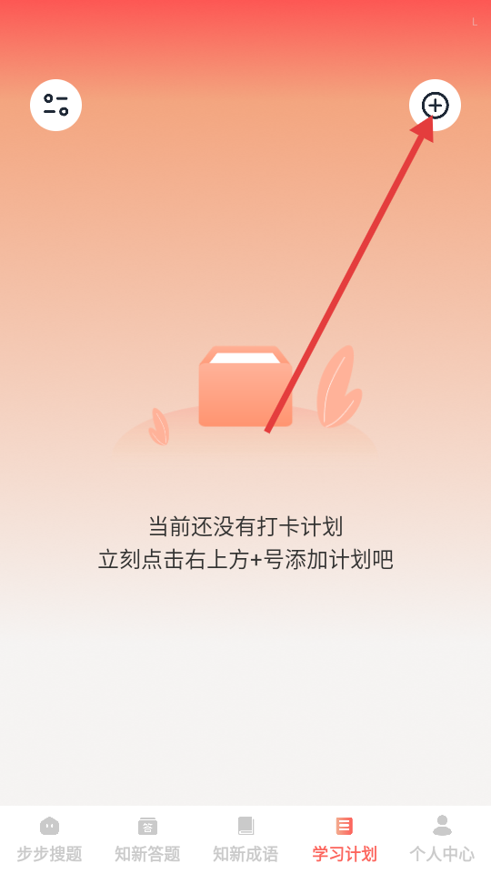 2、进入学习计划页面,点击右上方“+”号添加计划。