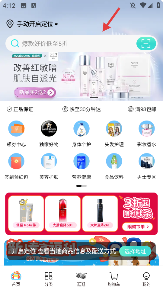 全球正品美妆护肤品全场1折起,注册就送520元大礼包,线上下单门店自提,优选附近门店1小时送达,放心又便捷!屈臣氏百年品牌信誉,100%正品保证,汇聚春雨、城野医生、森田、宝洁等人气品牌,提供从护肤、美妆、美发、日用、个护、零食等全方位产品选择.