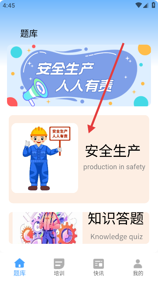 1、打开APP后,点击选择下方【安全生产】【知识答题】等板块进行答题。