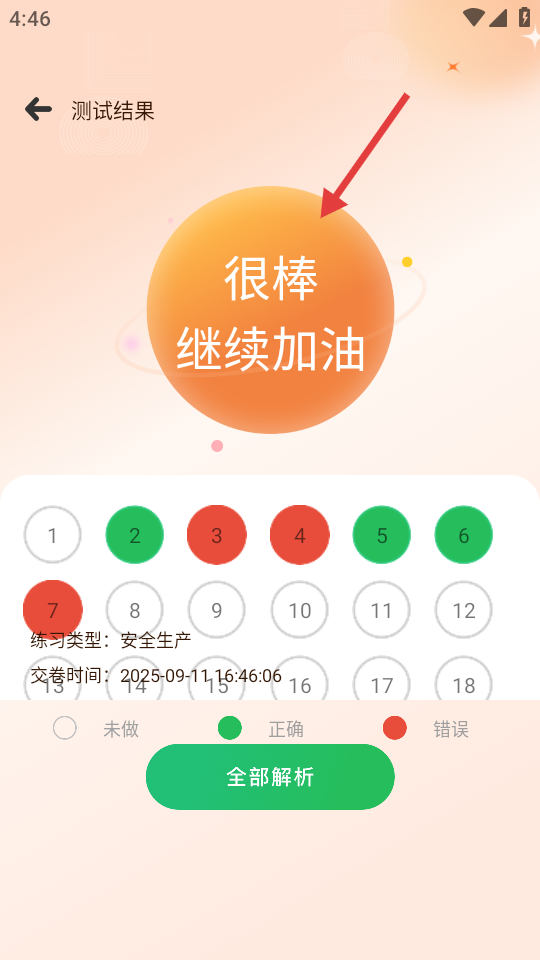 4、完成答题后,系统会展示测试结果,可查看各题的对错情况及正确答案。