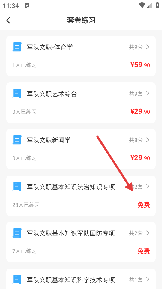 2、进入套卷练习页面,选择所需练习。