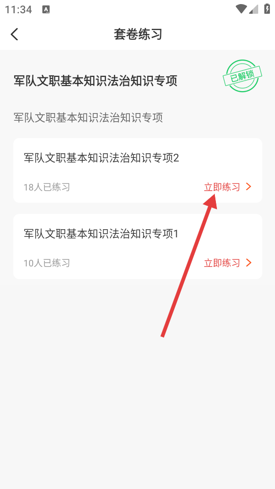 3、进入详情页面后,选择专项练习。