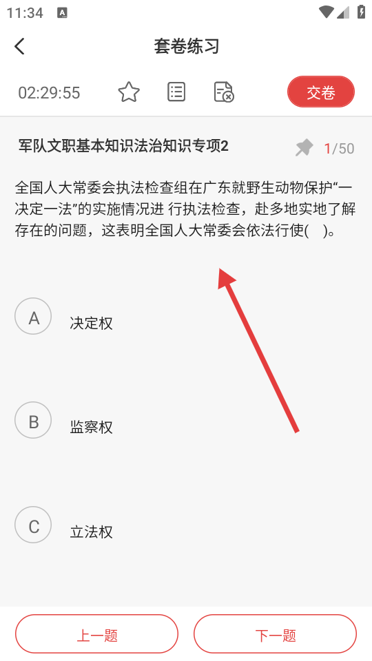4、进入套卷练习答题界面后,进行答题操作。