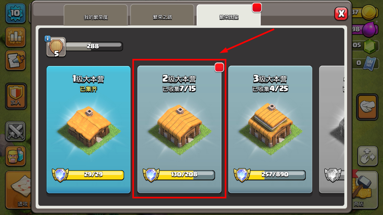1、关注大本营等级进度,先集齐【1级大本营】所需物品,再逐步推进【2级大本营】【3级大本营】的收集任务。