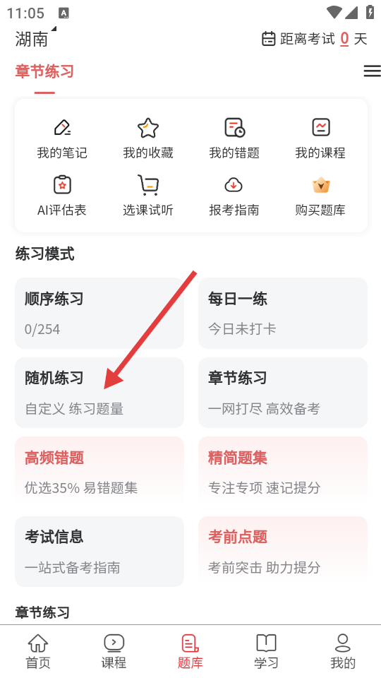 2、进行刷题练习:可选择章节练习进行在线训练,完成各类题目测试,检验学习成果和进步情况。