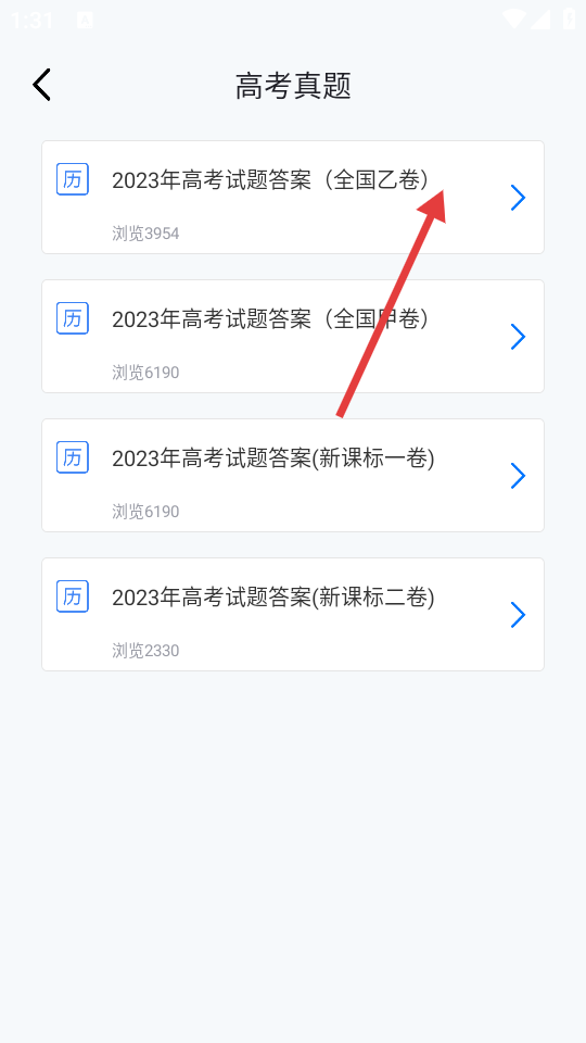 3、进入高考真题板块,挑选所需年份真题点击查看。