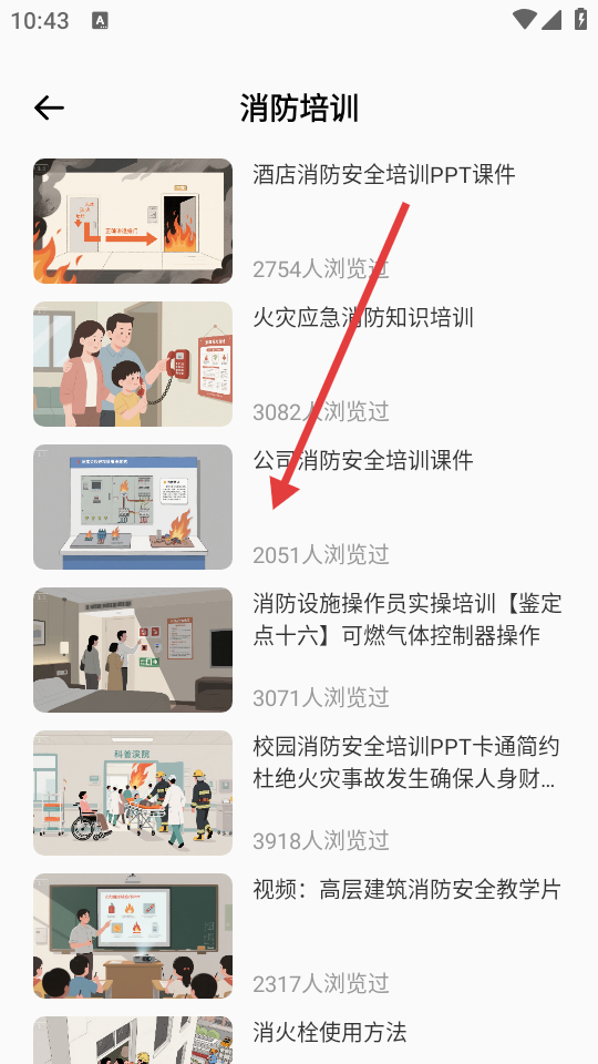 3、进入消防培训列表后,选择如【公司消防安全培训课件】想要学习的内容。