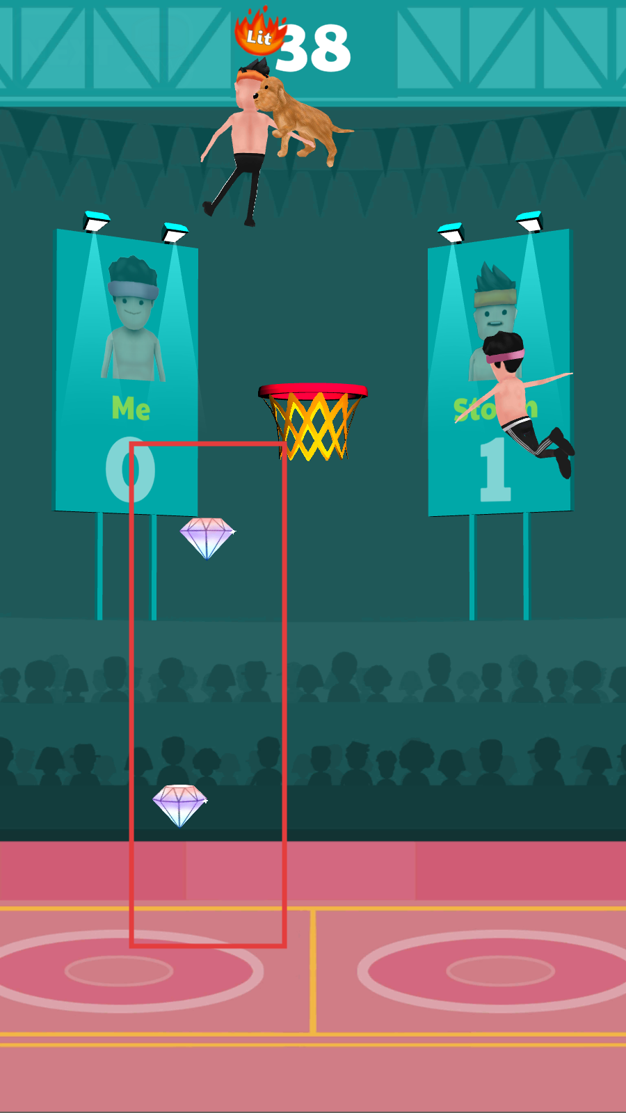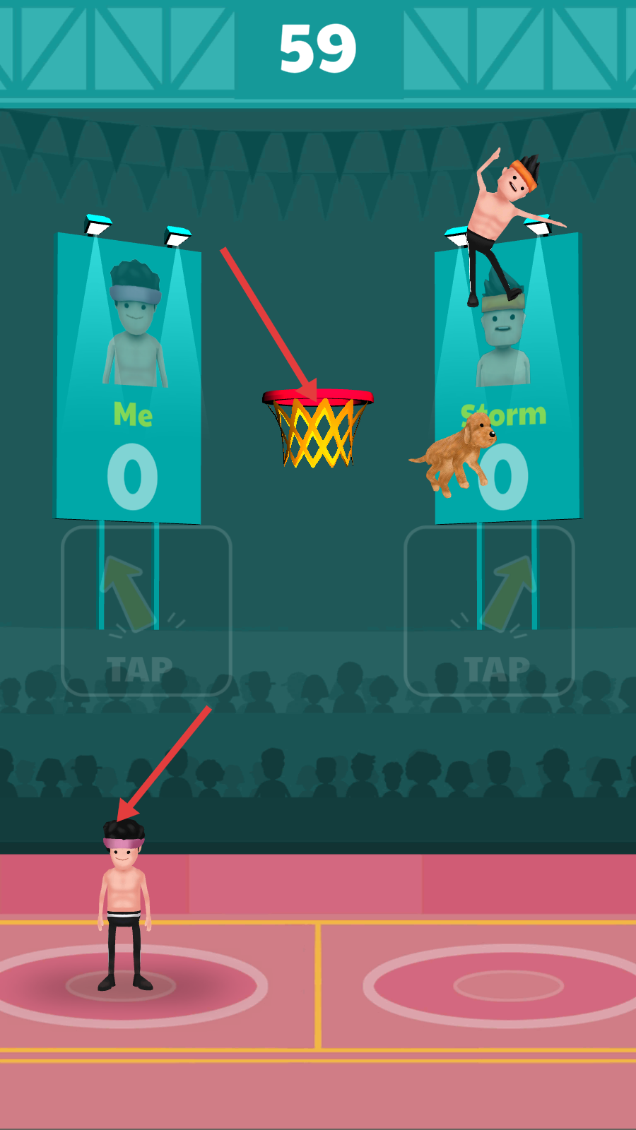 2、点击屏幕操控角色,在有限的时间内跟对手比赛,尝试将自己投入篮筐得分。