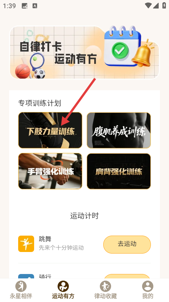 2、进入【运动有方】页面,可选择【下肢力量训练】专项训练计划。