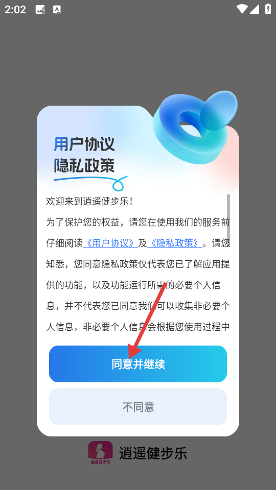 1、阅读【用户协议】及【隐私政策】,点击【同意并继续】进入软件。