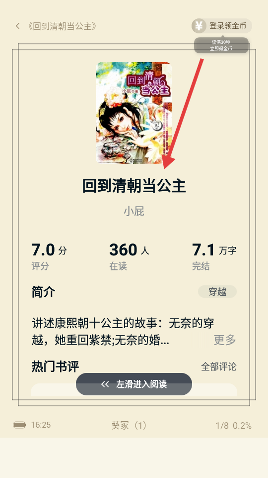 3、在搜索结果中,选择目标书籍(如《回到清朝当公主》),点击进入书籍详情页。