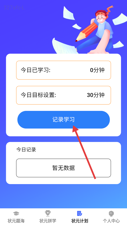 2、在【状元计划】页面,点击【记录学习】按钮。