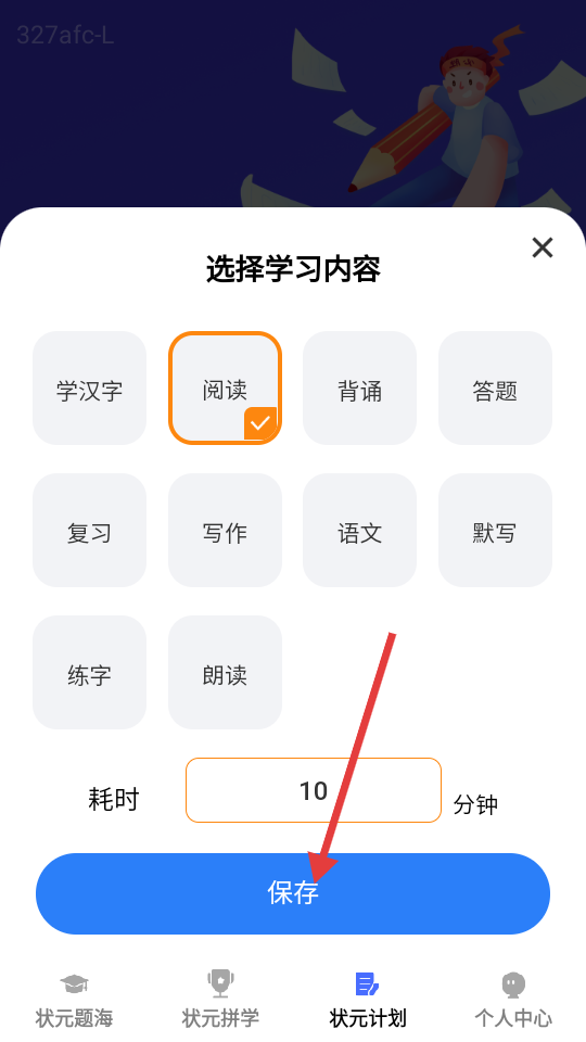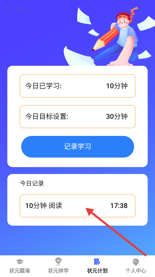 4、保存后,【状元计划】页面会显示今日已学习时长及今日记录。