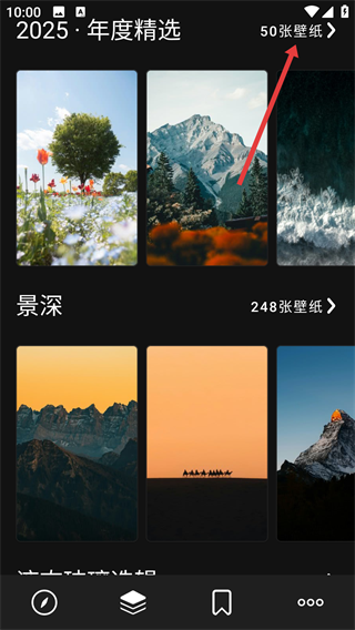 2、在合集分类页面里,找到【2025-年度精选】分类,点击其右侧的入口,就能进入该分类的壁纸集合页面啦。